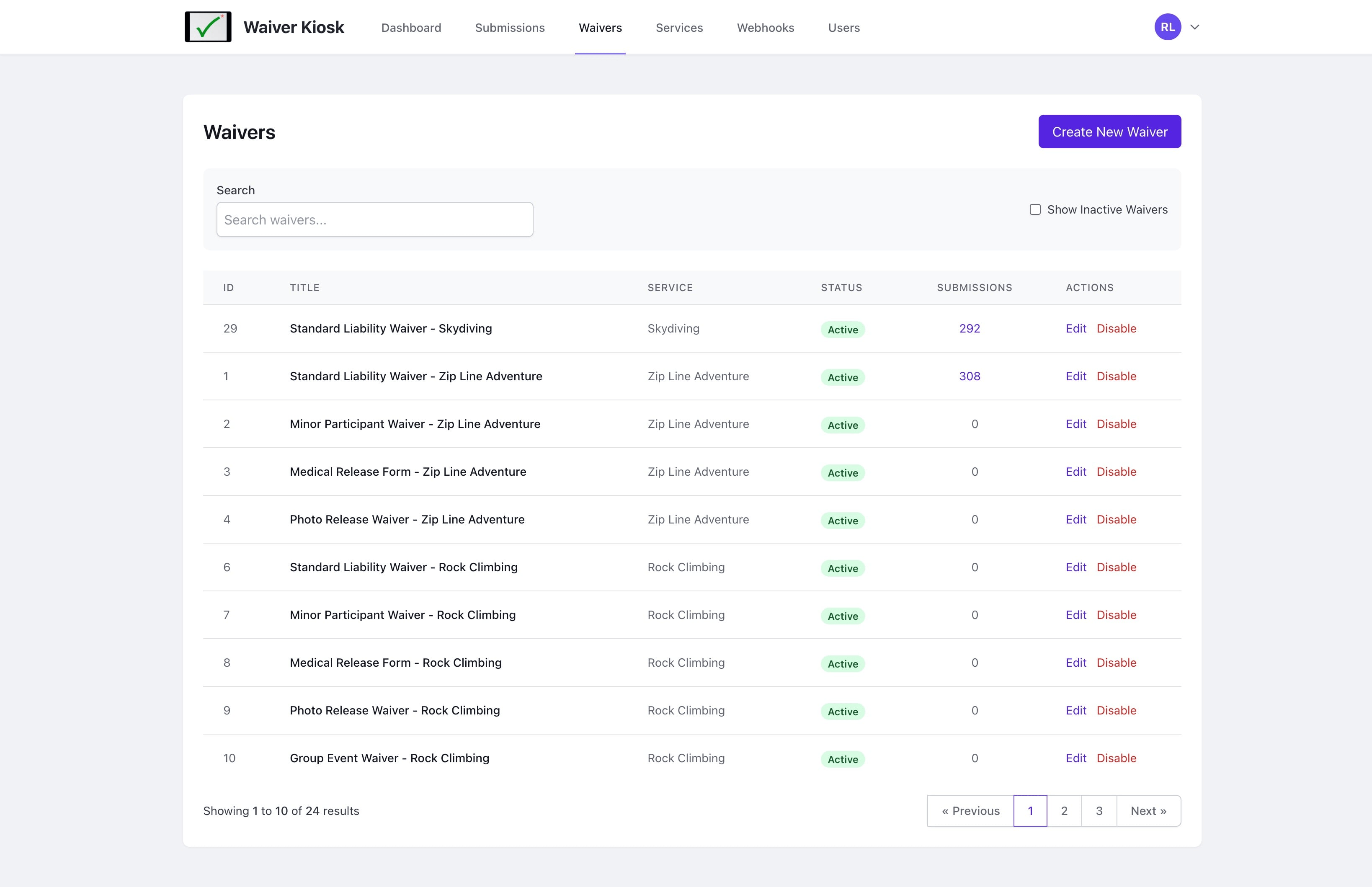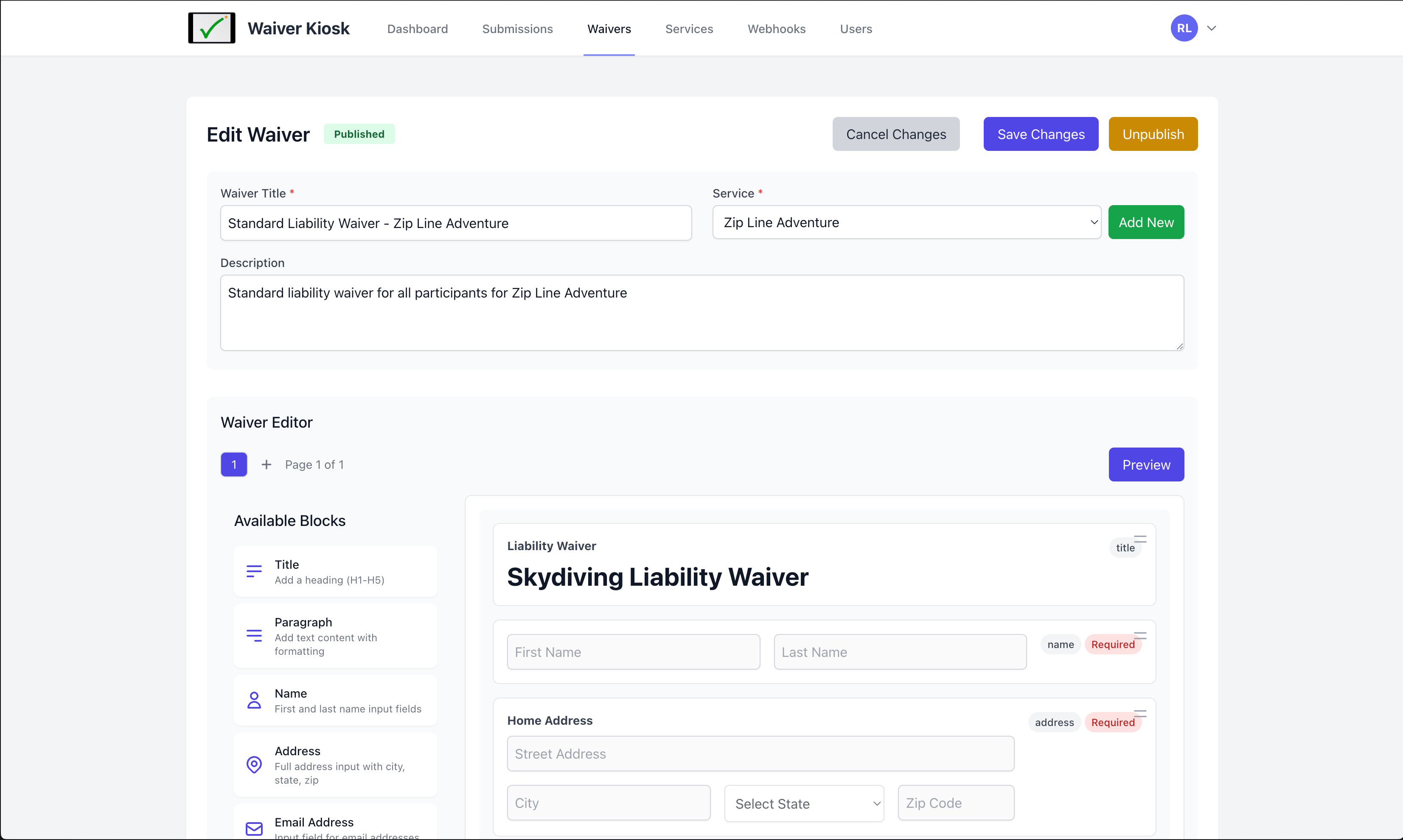 Add multiple pages per waiver for an easier waiver flow and presentation.
